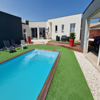 Superbe villa sur 4 faces sur un terrain de 1700 m² clos et arboré, d'une superficie de 176 m² habitables, comprenant un beau séjour salon avec cheminée d'environ 65 m², une cuisine semi ouverte aménagée et équipée donnant sur la cuisine d'été avec son salon et son coin repas abrités, deux chambres avec leur salle d'eau et wc, une suite parentale avec placard, salle d'eau et wc, une arrière cuisine, un cellier et wc indépendant. Une belle mezzanine vient surplomber le salon. Non attenant à la villa, un garage de 150 m² avec wc + une grande pièce chauffée + une pièce avec toilettes (possibilité création studio). Une piscine traditionnelle au sel, chauffée et sécurisée sans vis à vis. Belles prestations : chauffage au sol + climatisation, volets roulants électriques avec commande centralisée, alarme, forage, arrosage intégré, vide sanitaire... PARFAIT ETAT. Renseignements et visites Emilie VALLEJO - 04.30.37.04.67 - 06.67.40.76.73 - LA NOUVELLE AGENCE - L'Immobilier en toute confiance. Les informations sur les risques auxquels ce bien est exposé sont disponibles sur le site Géorisques