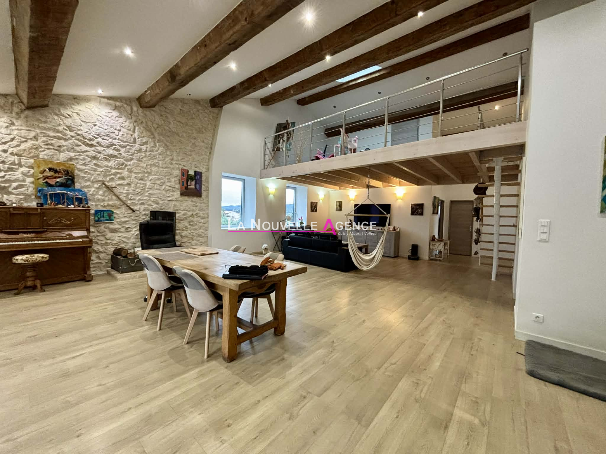Grande maison de ville entièrement rénovée, offrant de beaux volumes, un grand garage et un jardin sans vis-à-vis. Au rez-de-chaussée, vous trouverez un vaste garage d’environ 160 m² avec portail motorisé, ainsi qu’une porte d’entrée indépendante. À l’étage, une habitation avec entrée indépendante, comprenant un superbe séjour/salon avec cuisine américaine de 80 m², agrémenté d’une belle mezzanine accueillant une bibliothèque, une salle de jeux et un dressing. La partie nuit offre trois chambres, dont une avec mezzanine, une salle de bains avec WC, une suite parentale avec salle d’eau et dressing, ainsi qu’un WC indépendant. Une arrière-cuisine et une buanderie complètent l’ensemble. À l’extérieur, une terrasse en partie couverte et un jardin clos d’environ 165 m², avec accès possible pour un ou plusieurs véhicules. Panneaux photovoltaiques. Bien rare, idéal pour une famille ou un projet mêlant habitation et espace professionnel. Renseignements et visites Emilie Vallejo - 06.09.09.04.33 - 04.30.37.04.67 - LA NOUVELLE AGENCE - L'Immobilier en toute confiance. Les informations sur les risques auxquels ce bien est exposé sont disponibles sur le site Géorisques