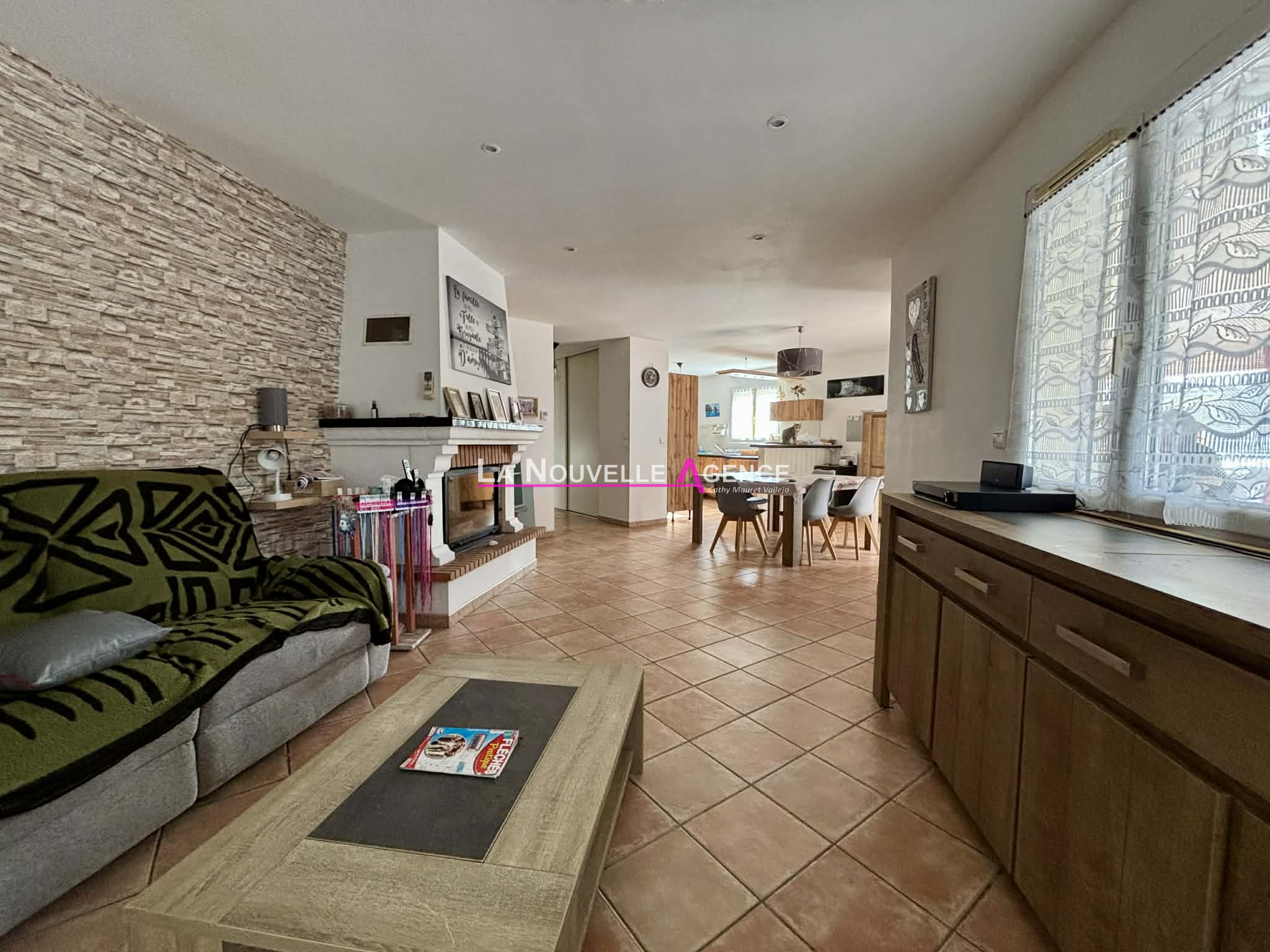 EXCLUSIVITE AGENCE - Située dans un quartier calme et résidentiel recherché, cette villa de plain-pied d'une superficie de 104 m² habitables offre un cadre de vie paisible et tout confort. Elle est composée d'un hall d'entrée avec deux grands placards, une vaste pièce à vivre climatisée de 42 m² qui regroupe un séjour salon avec cheminée (insert) et une cuisine américaine moderne entièrement équipée. Une belle véranda prolonge cet espace de vie pour en profiter en toute saison. Le coin nuit se compose de 3 chambres avec placards, d'une salle d'eau avec placard et d'un WC indépendant. Côté extérieur et annexes : Un espace jardin à l'arrière de 50 m² environ avec chalet et un jardin piscinable à l'avant de 290 m² environ exposé plein Sud. Un garage avec buanderie, une place de parking privative extérieure + possibilité de stationner un véhicule dans l'allée. Prestations : Double vitrage, volets roulants électriques, chauffage électrique, climatisation réversible, cheminée et récupérateurs d'eau de pluie. Renseignements et visites Emilie VALLEJO - 06.09.09.04.33 - 04.30.37.04.67 - LA NOUVELLE AGENCE - L'Immobilier en toute confiance. Les informations sur les risques auxquels ce bien est exposé sont disponibles sur le site Géorisques
